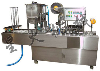 使用范围:果冻,酸奶,米酒,豆浆,奶茶,冰激凌,奶酪,方便面,米线,烩面等。产品配置:台湾气动元件,智能数显温度控制器,欧母龙PLC,紫外线灯管,光电定位控制器. 技术参数:设备尺寸:3500×850×1500mm灌装速度:1200杯/小时(两杯型) 2000杯/小时(四杯型)灌装量:50-350ml可调 整机重量:500Kg电压功率:220V/1.3KW