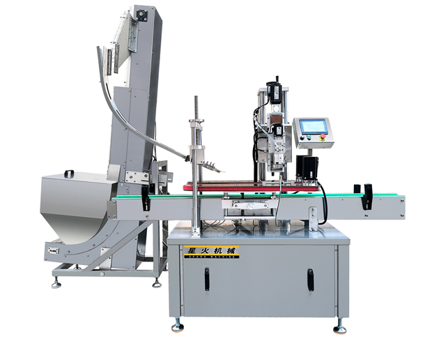 高速haha体育旋盖机是由我公司最近改进的一种新型旋盖机。该机外形美观大方、灵巧、旋盖速度快,合格率高、适用于食品、制药、日化、农药、化妆品等行业的不同瓶形的旋盖。该机种设计新颖独到、机械扭矩控制智能化,并且操作与调节十分便利,操作人员只需将瓶盖置于瓶口上,瓶子在向前运行的过程中,瓶盖被三组搓盖轮自动拧紧。既可用于单机生产,更是连线生产的理想机型。可方便地升级为完全的自动旋盖机ASP,haha体育 有提升式、斜盘式、震荡式等落盖系统,可根据实际需要选配。自动旋盖机主要适用于不同材质的规格及不同规格的盖、旋(轧)盖。适用螺旋盖、防盗盖防童盖、压入盖等。备有恒扭矩旋盖头,压力可方便调整。结构紧凑、合理,能方便与其它设备联动成线,防尘罩可选购。