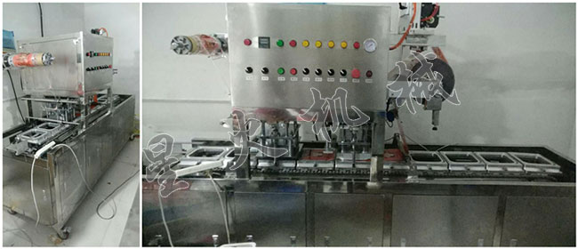 该机适用于各种塑料杯,碗,用塑料复合膜或铝塑复合膜进行热封和切边,如盒装龙虾、盒装熟食和其他盒装食品或类似产品的包装封口,经包装后的产品外形美观,立体感强.本机设计新颖,结构简单合理,操作方便,包装效果较为理想,外部材料采用不锈钢和铝合金,符合卫生要求,特别适合中小企业选择使用。