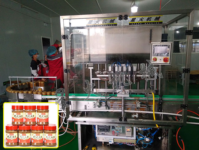 近日,高碑店市溢香坊食品有限公司从我司购买了以六头灌装机为主的多台设备,用于组建纯麻酱灌装生产线,用于瓶装纯麻酱、山药酱等酱类的灌装生产。目前设备已经全部经过调试安装,已投入生产当中,纯麻酱灌装机的高生产效率和良好的生产效果获得了客户的认可!